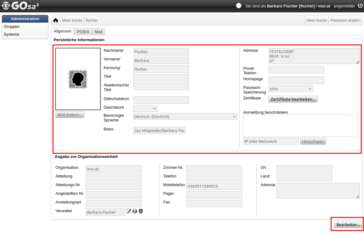 Die Verwaltung Deines Accounts (Login, Passwort, Kontaktdaten wie Adresse / Telefonnummer) erfolgt über das Webinterface GoSa.