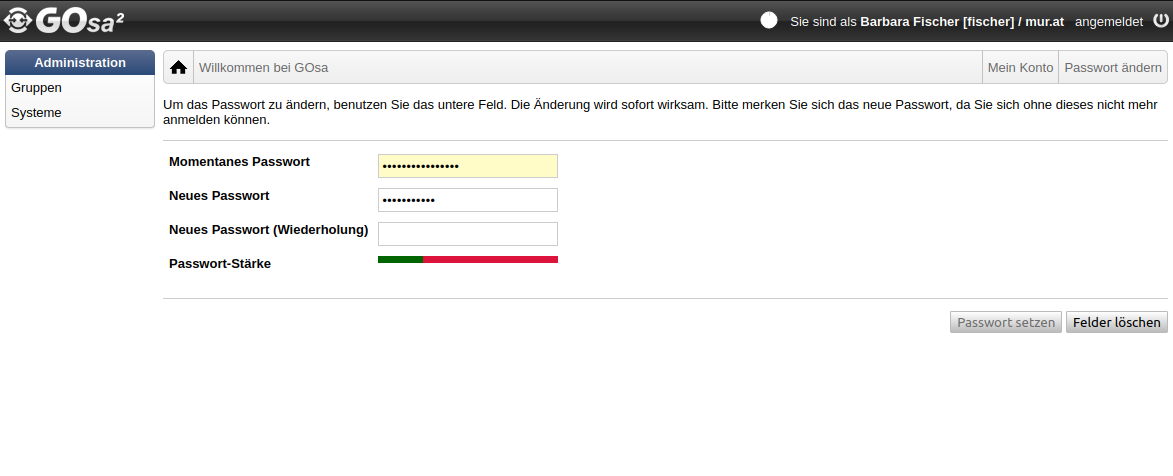 Vom Tag der letzten Passwortänderung gilt ein Passwort 365 Tage lang. 30 Tage vor Ablauf der Gültigkeit erscheinen in GoSa Warnungen, die auf den bevorstehenden Ablauf hinweisen. Außerdem verschicken wir ab diesem Zeitpunkt Emails, mit dem Hinweis auf das bevorstehende Ablaufdatum.