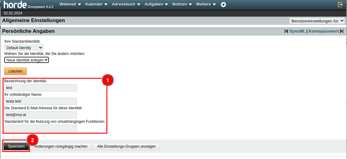 Einrichten des Mailalias im Webmail (Horde)